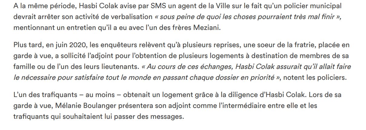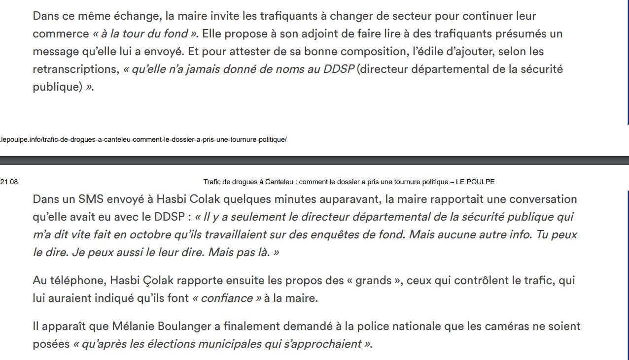 c’est toujours de pire en pire dans la gangrène du pays : voilà maintenant la protectrice des dealers , la collabo dans toute sa splendeur avec un adjoint de même acabit (mais qu’espérer d’autre d’une socialo) qui essaie de se “dépatouiller” des graves faits qu’elle a commis : c’est vraiment la république corrompue et bananière : espérons qu’elle sera inéligible à vie – en attendant il s’agirait d’un maire de “droite” il aurait été démis immédiatement de ses fonctions