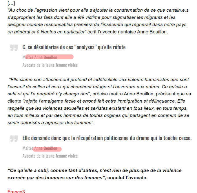 La mairesse a du arranger le coup avec l’avocate de la photo puisque c’est elle qui défend la violée (une petite défense a l’oeil et on dit ce qui va dans le sens de la doctrine en place) Si elle avait été violée par henri dupont et marcel martin ,je suis certain qu’ils auraient eu sa haine et une forte amende a regler