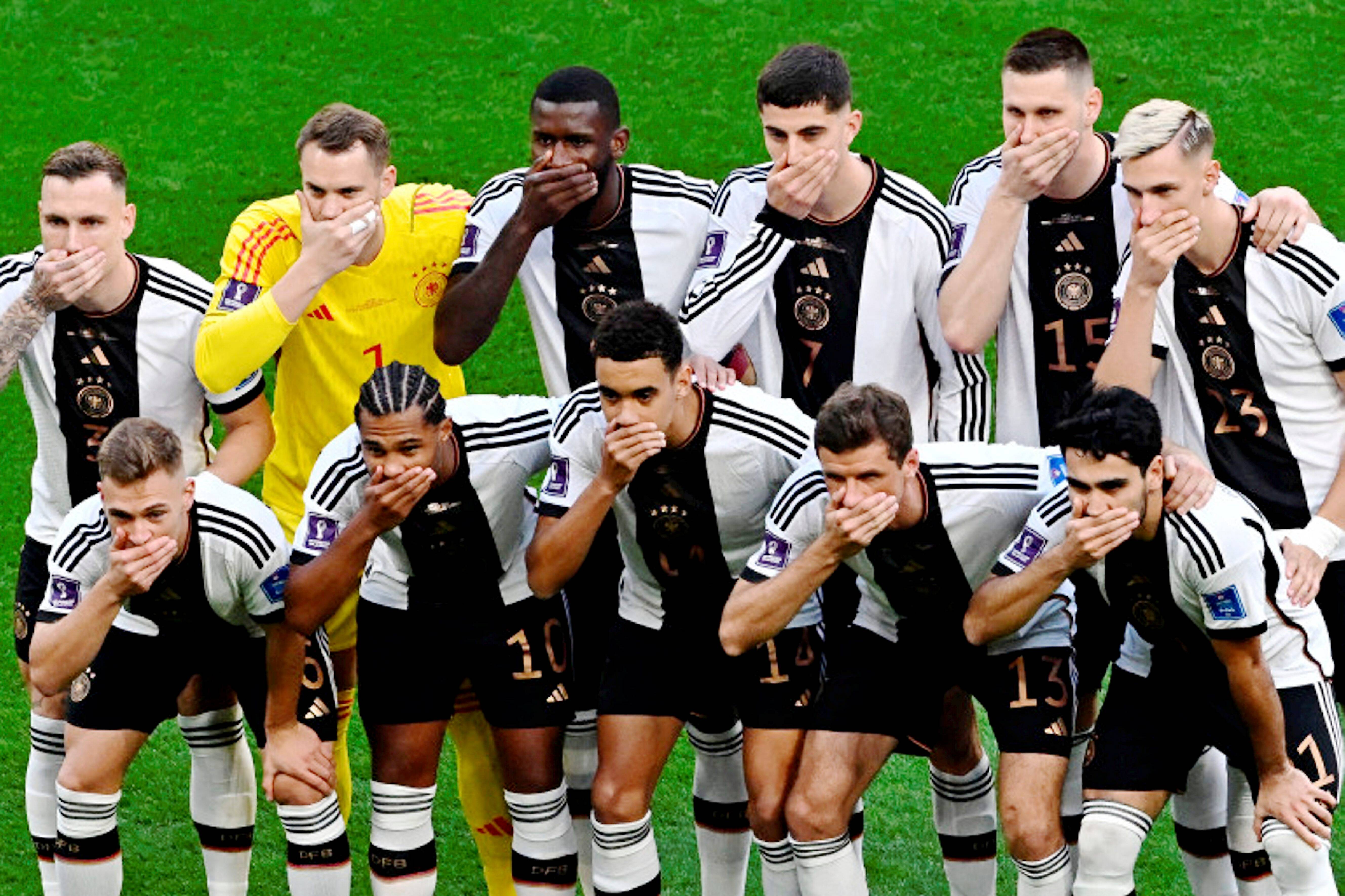 Tout d’abord la malédiction au Qatar continue, les boches se sont fait Nikkei. Ils n’auraient pas dû défier les forces occultes, avant le match ils ont fait cette pose incongrue !  Une vraie prémonition !